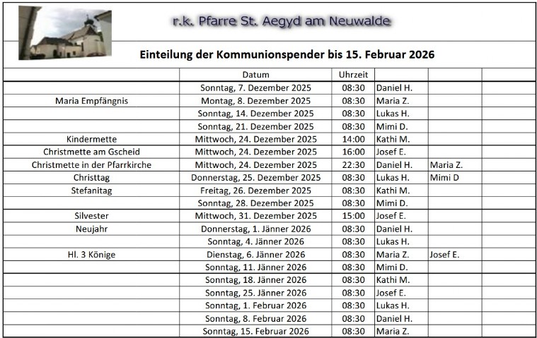 Kommunionspender - Pfarren St. Aegyd am Neuwalde und Hohenberg